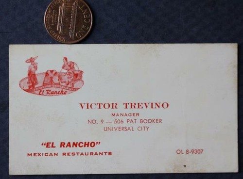 1966 Universal City Texas El Rancho Mexican Restaurant Business Card Randolph Ebay